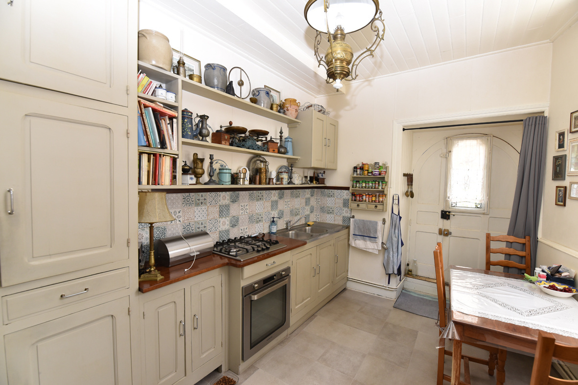 SAINT MEEN LE GRAND, centre ville, une maison d'habitation comprenant une entrée, un salon séjour, une cuisine aménagée, une salle de douche, une chambre, à l'étage possibilité de 3 chambres, grenier au-dessus aménageable. Grand atelier attenant. Dépendance, garage, remise. Cour et jardin. Beau potentiel.
